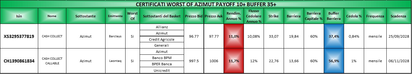 I certificati reverse, quelli in dollari e quelli che verranno richiamati con ragionevole certezza alla prossima osservazione sono stati scartati.