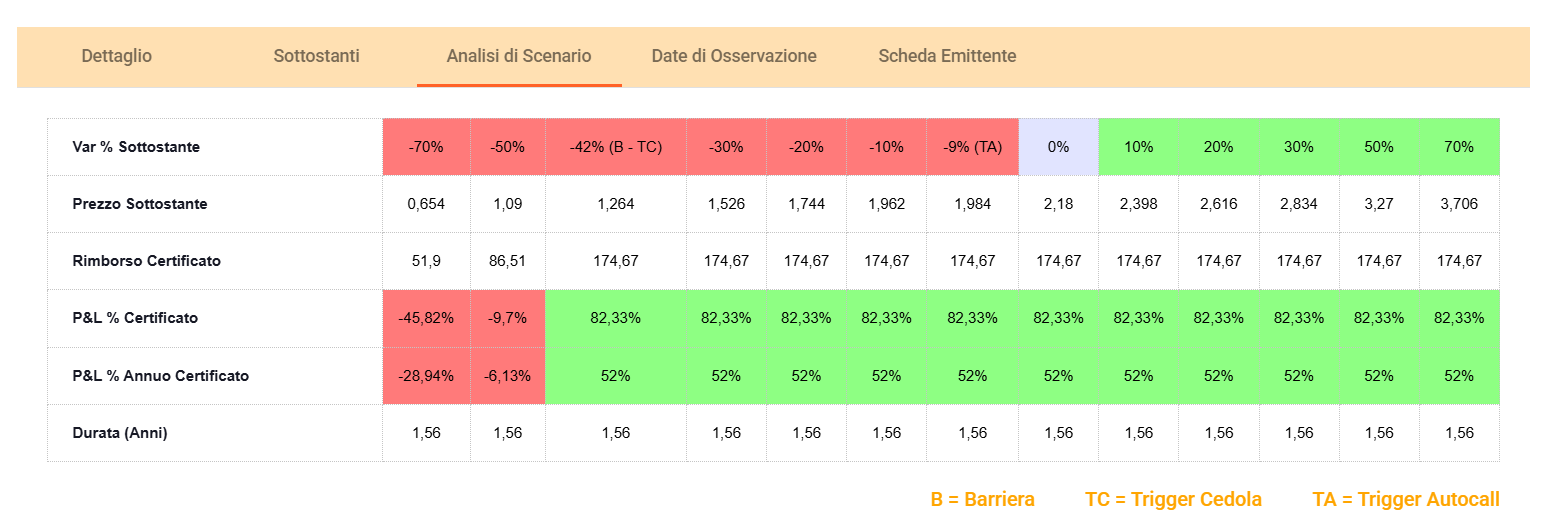 A fronte di questo, se siamo disposti ad accettare il rischio implicito di questo certificato (elevato in assoluto), il potenziale è devastante: