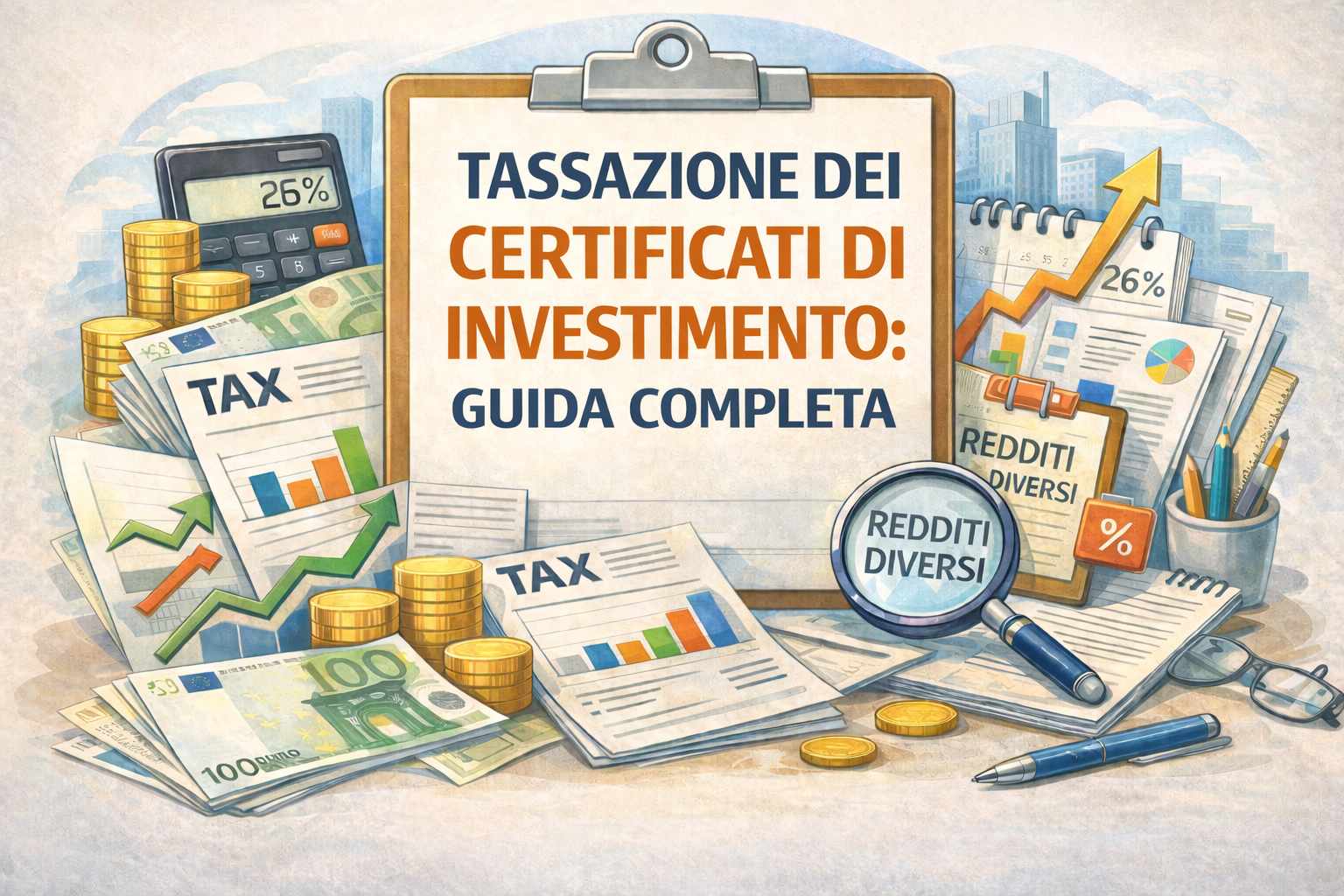 La tassazione dei certificati di investimento è uno degli aspetti più importanti da comprendere per valutare correttamente il rendimento netto degli investimenti. In Italia, i certificati sono classificati come redditi diversi ai fini fiscali, con un'aliquota del 26% su plusvalenze e cedole. Questa guida analizza in dettaglio il regime fiscale, le modalità di tassazione e le strategie di ottimizzazione fiscale.